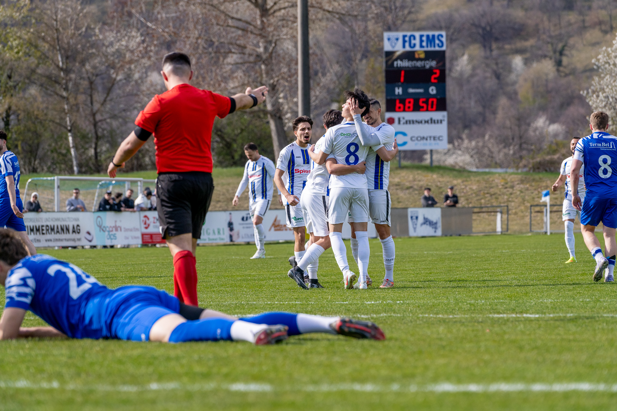 Bereits in der 8. Minute brachte Orhan Ademi nach präziser Vorlage von Tobias Dierauer die Gäste in Führung. Die Gastgeber aus Ems zeigten zunächst eine starke Leistung, und glichen kurz vor der Halbzeit per Strafstoss durch Sousazum 1:1 aus.